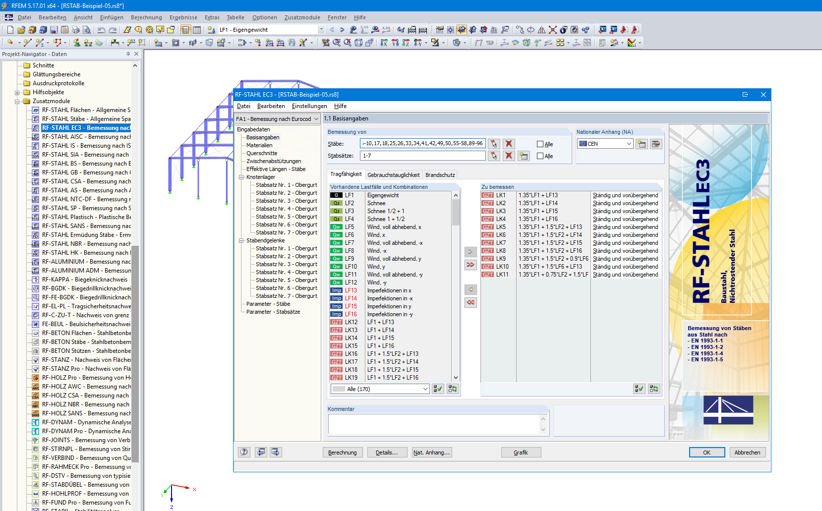 Die Hauptprogramme können auch mit Zusatzmodulen wie RF-/DYNAM Pro oder RF-BEWEG erweitert werden, die den Funktionsumfang vergrößern. Die meisten Zusatzmodule haben eine eigene Programmoberfläche, in der die normspezifischen Gegebenheiten berücksichtigt werden.