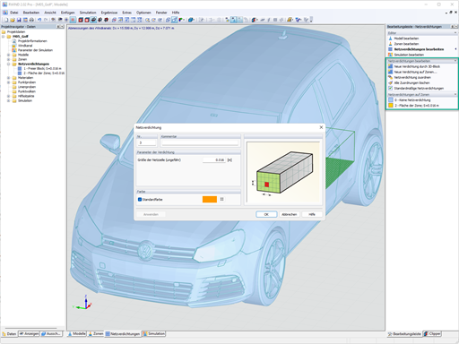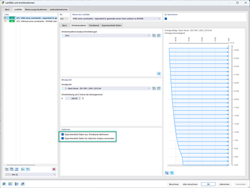Mit RWIND 2 Pro gelingt es Ihnen völlig problemlos, eine Durchlässigkeit auf eine Fläche anzuwenden. Alles, was Sie brauchen, ist die Definition des Darcy-Koeffizienten D, des Trägheitskoeffizienten I und der Länge des porösen Mediums in Strömungsrichtung L, und schon kann eine Druckrandbedingung zwischen der Vorder- und Rückseite einer porösen Zone definiert werden. Dank dieser Einstellung erhalten Sie eine Strömung durch diese Zone mit einer zweiteiligen Ergebnisausgabe auf beiden Seiten des Zonenbereichs.
