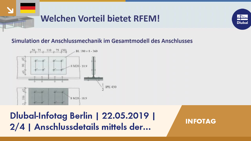 Im zweiten Teil der Aufzeichnung vom Dlubal-Infotag zeigt Ihnen Andreas Niemeier, wie einfach Sie in RFEM einen Stahlbauanschluss mit Hilfe von FEM-Berechnungen elastisch und plastisch bemessen können. Es werden diverse Modellierungstechniken und Kontaktelemente vorgestellt.
