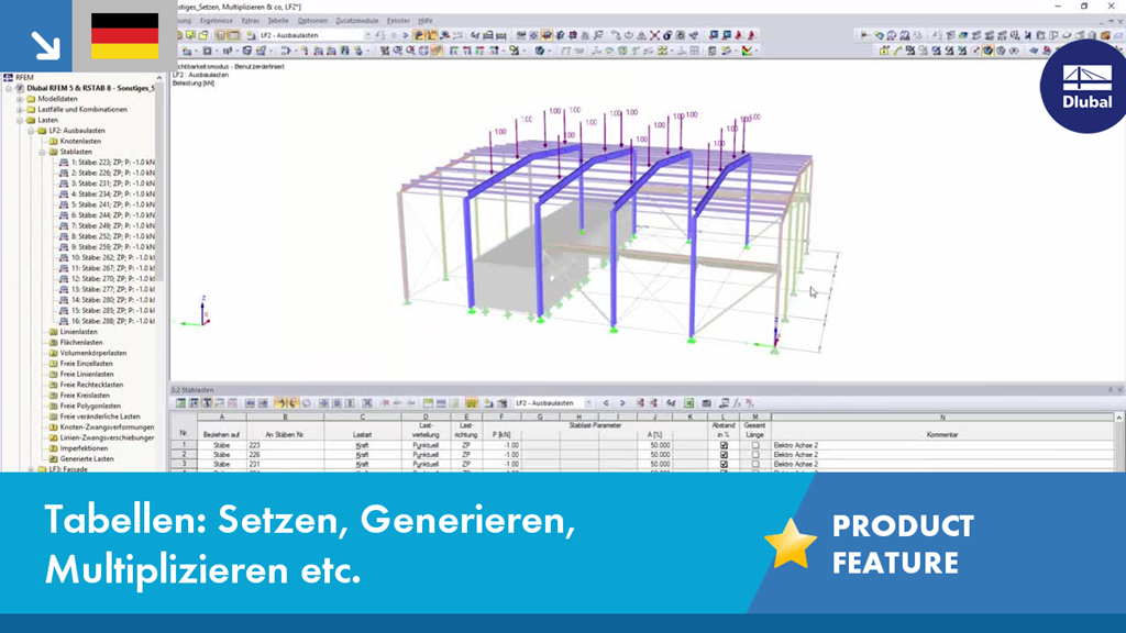Dlubal RFEM 5 & RSTAB 8 - Tabellen: Setzen, Generieren, Multiplizieren etc.