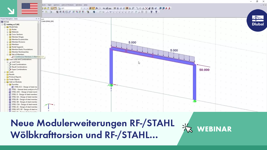 - Stabilitätsnachweis nach EN 1993-1-1 mit den neuen Modulerweiterungen RF-/STAHL Wölbkrafttorsion und RF-/STAHL Plastizität