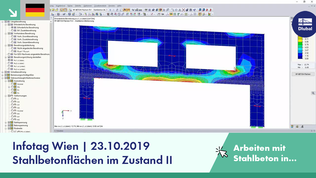 Im letzten Teil der Aufzeichnung vom Dlubal-Infotag zeigt Ihnen Paul Kieloch die Berechnungen der Verformungen von Stahlbetonflächen im Zustand II.