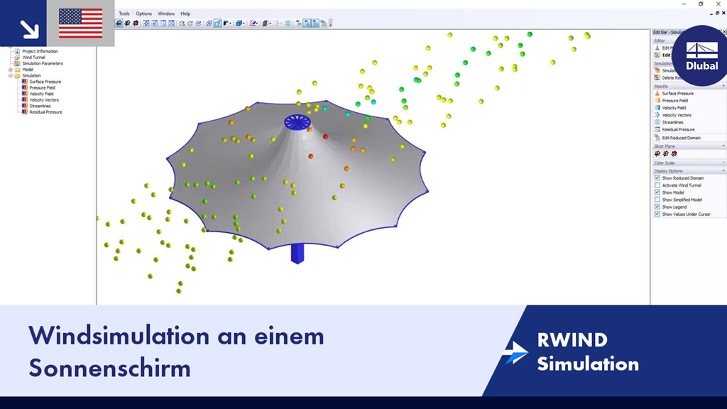RWIND Simulation | Windsimulation an einem Sonnenschirm