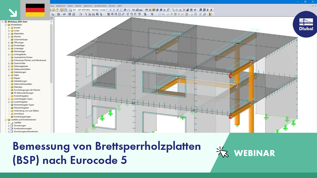In diesem Webinar wird gezeigt, wie in dem FEM-Programm RFEM und seinem Zusatzmodul RF-LAMINATE Strukturen aus Brettsperrholzplatten (BSP) und -wänden modelliert, berechnet und bemessen werden.