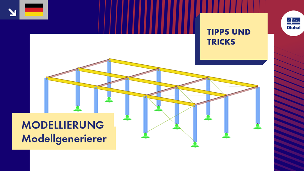 In diesem Video wird gezeigt, wie mit Hilfe von Modellgenerierern Strukturen durch Vorgabe der wichtigsten Parameter automatisch erzeugt werden können. Exemplarisch wird dazu ein 3D-Rahmen inklusiver Verbände generiert.