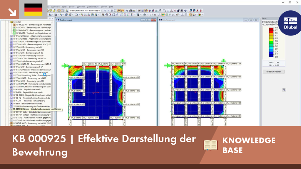 Eine effektive Möglichkeit die Bewehrung darzustellen, ist die Anordnung in Gruppen. Es empfiehlt sich, jeweils die notwendige obere Bewehrung und die untere Bewehrung in zwei Gruppen aufzuteilen.
