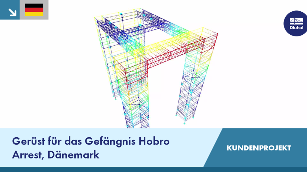 Die Gerüstkonstruktion besteht aus Fachwerkträgern aus Aluminium mit Höhen zwischen 0,5 m und 1 m sowie Horizontalträgern, Stützen, Geländern und Aussteifungsverbänden aus Stahl. Alle Elemente stammen aus dem PlusEight-System.