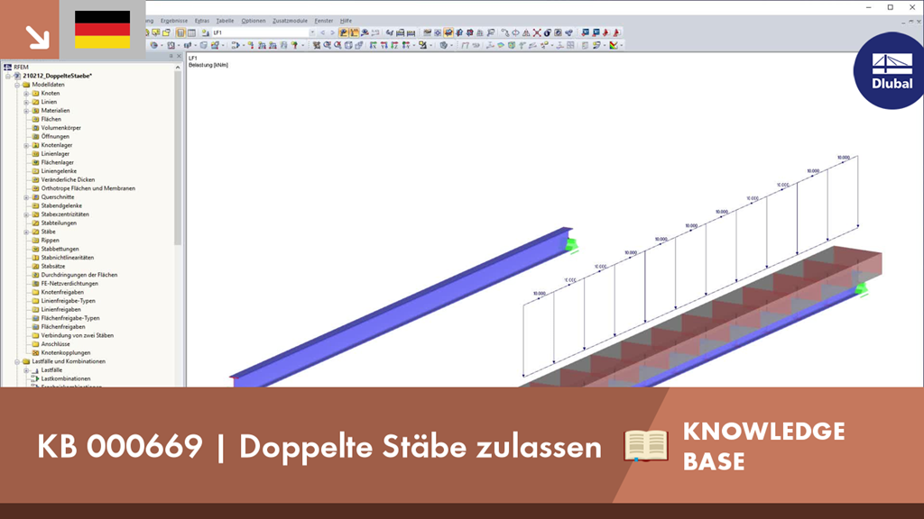 In der Regel sind übereinanderliegende Stäbe im Modell unerwünscht. Mit der Funktion "Doppelte Stäbe zulassen" wird ein vorhandener Stab nicht überschrieben, wenn ein weiterer Stab über diesen gelegt wird.