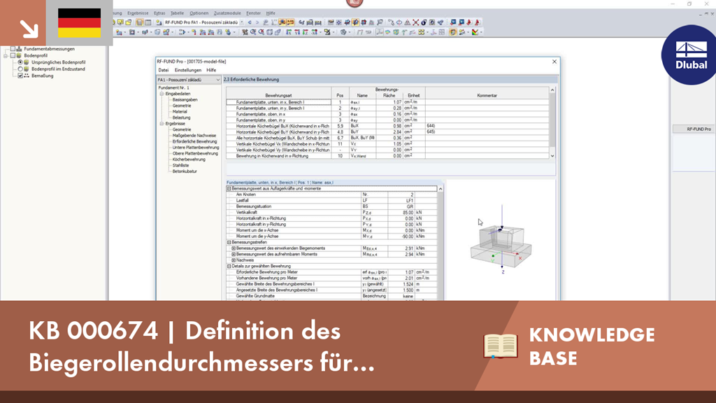KB 000674 | Definition des Biegerollendurchmessers für Fundamentbewehrung