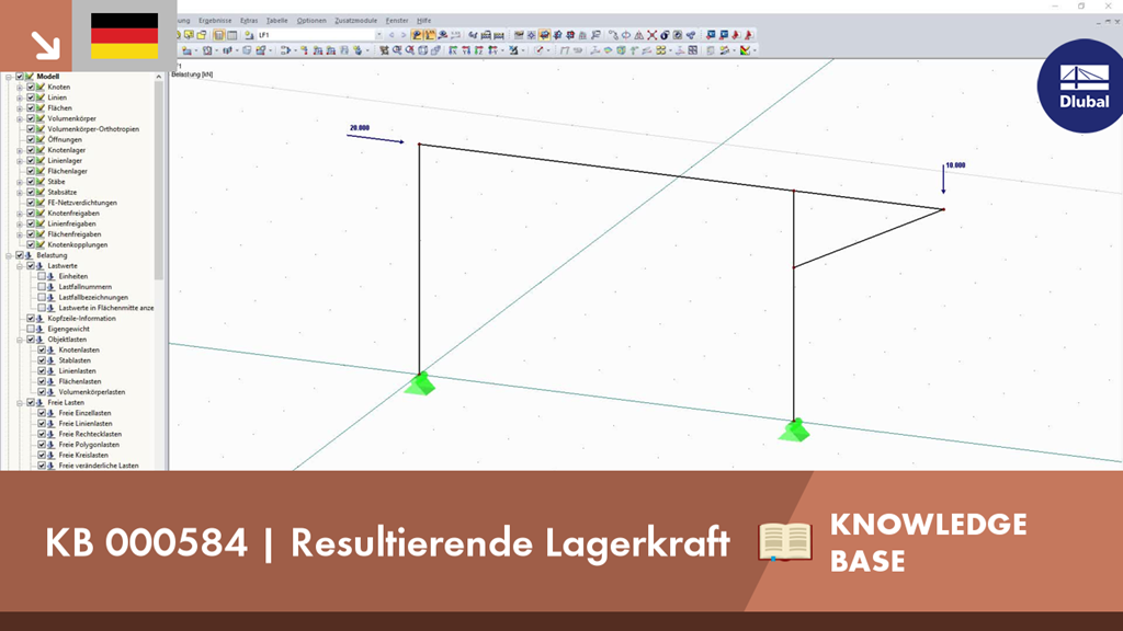 In RFEM 5 und RSTAB 8 kann die resultierende Lagerkraft bezogen auf den Schwerpunkt des Modells ausgegeben werden. Dies kann beispielsweise zur Kontrolle der Struktur- und Lastdaten dienen.