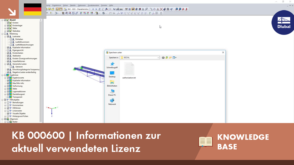 In RFEM 5 und RSTAB 8 ist es möglich, Informationen zur aktuell verwendeten Lizenz sowie Detailinformationen über installierte Dongletreiber auszulesen. Bei Lizenzproblemen kann die erzeugte Textdatei dem Techniker der Dlubal-Hotline für eine schnelle und effektive Analyse zur Verfügung gestellt werden. Die Erzeugung der Datei wird über das Menü "Hilfe" → "Autorisierung" → "Diagnostics" gestartet.