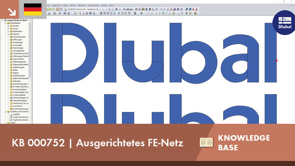 Die Option "Ausgerichtetes FE-Netz" wirkt sich bei der Netzgenerierung von Flächen mit gekrümmten und geknickten Außenkonturen aus. Dabei versucht das Programm, das FE-Netz an den Begrenzungslinien der Flächen auszurichten.