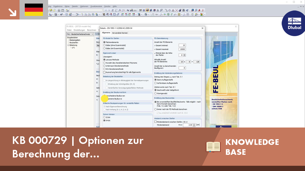 In FE-BEUL 8 gibt es in den Detaileinstellungen zwei Optionen, die für die Berechnung der Abminderungsfaktoren des Beulens herangezogen werden können.