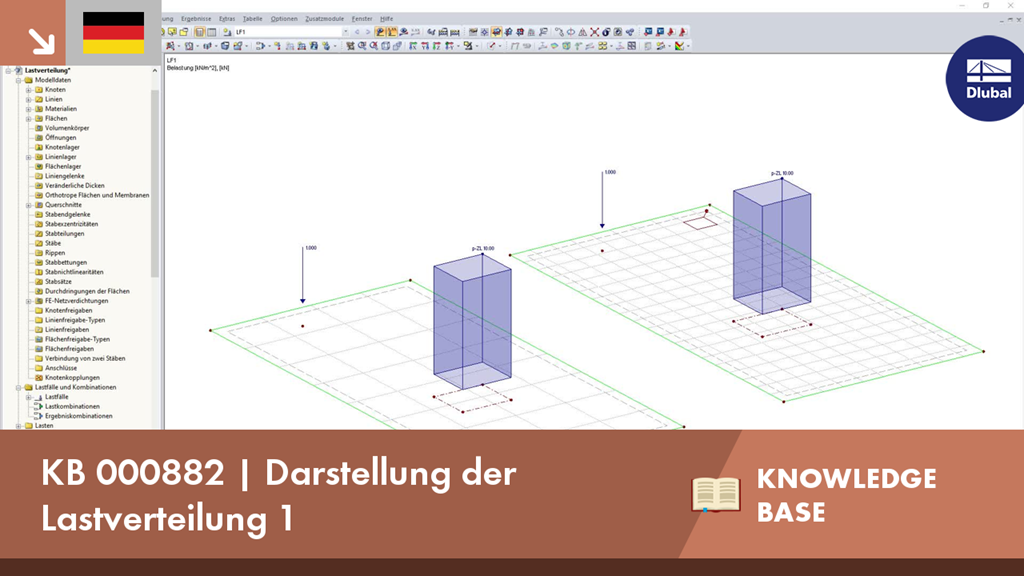 Die "Lastverteilung" stellt die auf das System tatsächlich aufgebrachte Last in den FE-Netzpunkten und gegebenenfalls auf die FE-Flächen dar. Insbesondere bei Linienlasten und bei freien Lasten spielt die FE-Netzgröße für die Belastung eine große Rolle.