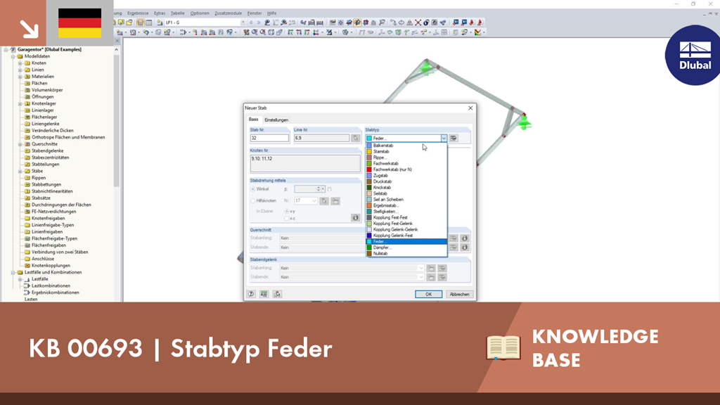 Das Programm RFEM5 bzw. RSTAB8 bietet bei der Definition eines Stabes unter den Stabtypen eine "Feder" Option an.