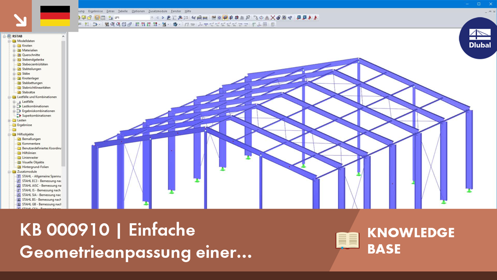 - KB 000910 | Einfache Geometrieanpassung einer 3D-Halle: Dachneigung und Rahmenabstand