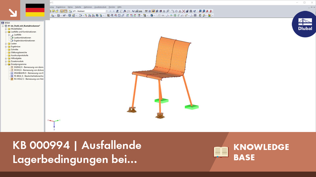 Zur realitätsnahen Modellierung eines Flächenmodells mit ausfallenden Lagern steht in RFEM 5 bei Kontaktvolumen unter "Kontakt parallel zu den Flächen" die Option "Ausfall, falls Kontakt senkrecht zu den Flächen wirkt" zur Verfügung.