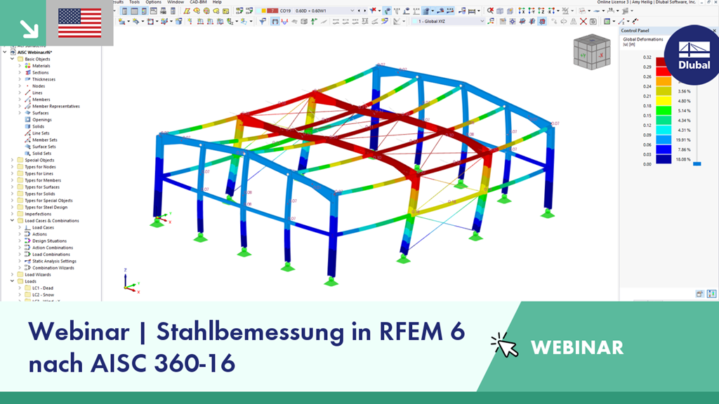 Dieses aufgezeichnete Webinar bietet eine Einführung in die Stahlbemessung nach AISC 360-16 in RFEM 6.