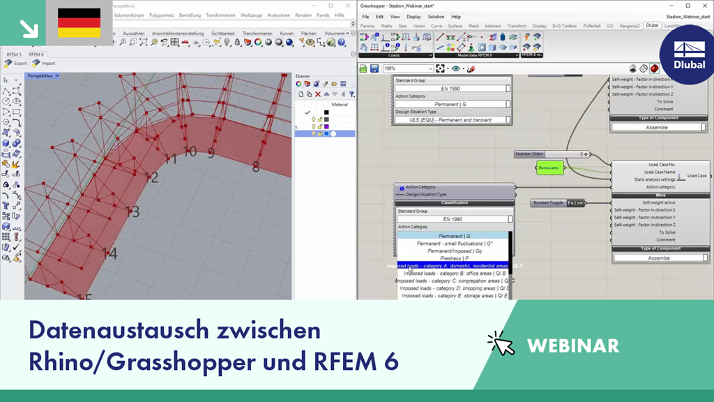 In diesem Webinar zeigen wir Ihnen, wie Sie Daten zwischen Rhino/Grasshopper und RFEM 6 austauschen können.