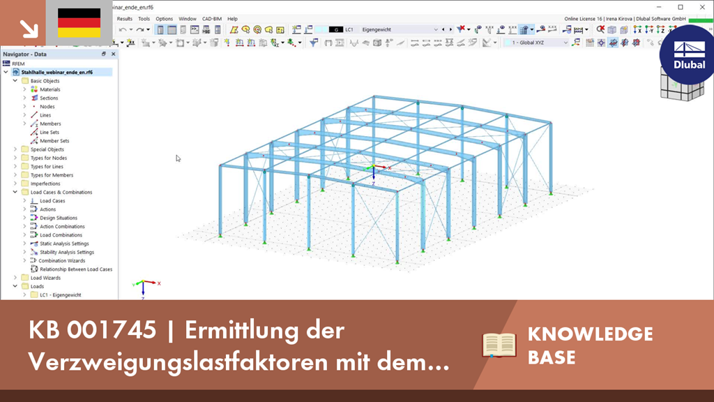 In diesem Video wird anhand eines praktischen Beispiels gezeigt, wie Verzweigungslastfaktoren und zugehörige Stabilitätsfiguren in RFEM 6 ermittelt werden können.