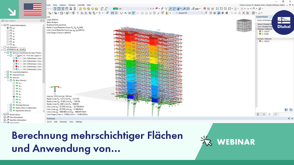 In diesem Webinar zeigen wir Ihnen, wie Sie mit dem Statikprogramm RFEM 6 mehrschichtige Flächen berechnen und Gebäudemodelle verwenden können.