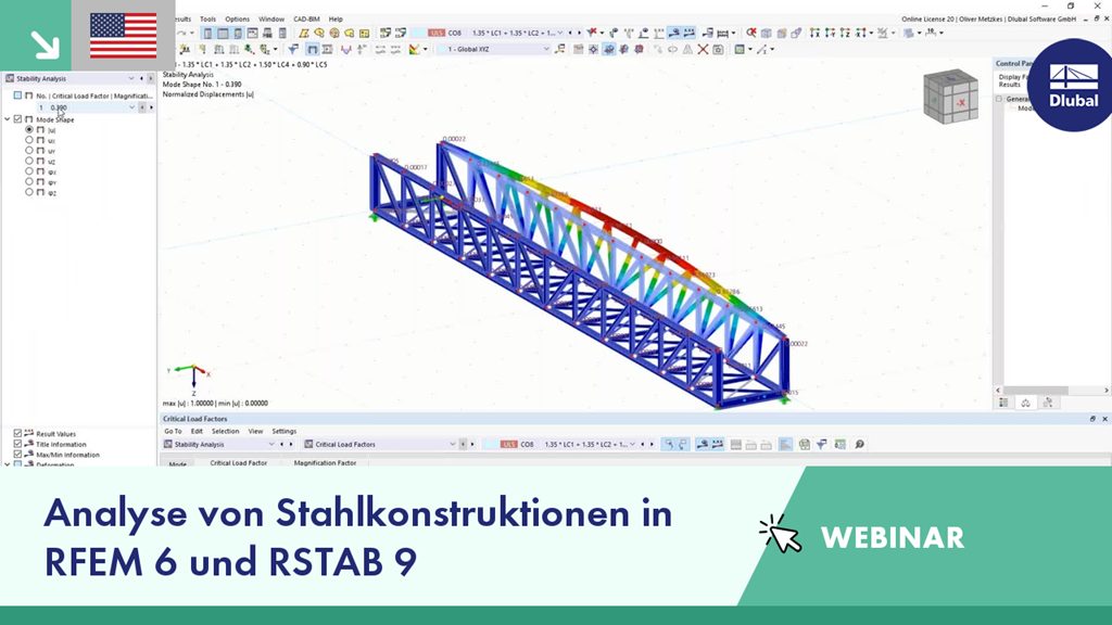 In diesem Webinar wird am Beispiel einer Fachwerkbrücke gezeigt, wie Stahltragwerke in RFEM 6 und RSTAB 9 nach Eurocode 3 bemessen werden können.