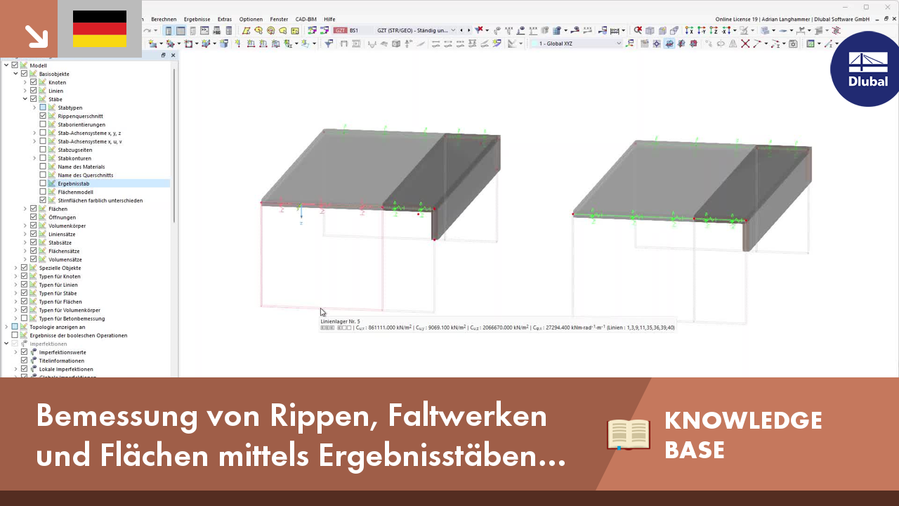 ► KB 001838 | Bemessung von Rippen, Faltwerken und Flächen mittels Ergebnisstäben in RFEM 6: https://www.youtube.com/watch?v=VCEL4GK0SA8