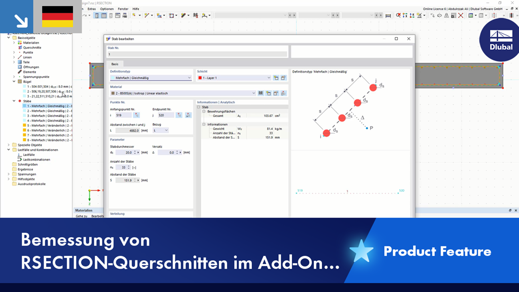 Im Add-On Betonbemessung können Sie beliebige RSECTION-Querschnitte bemessen. Die Betondeckung, Querkraft- und Längsbewehrung definieren Sie direkt in RSECTION.