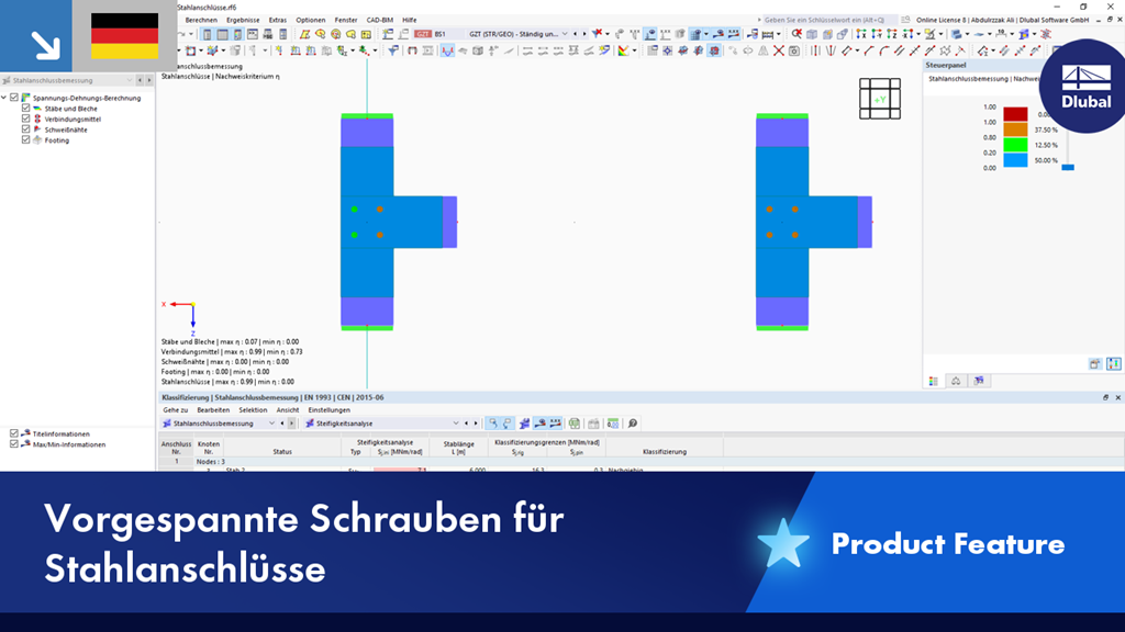 Im Add-On Stahlanschlüsse haben Sie die Möglichkeit, in sämtlichen Komponenten die Vorspannung von Schrauben bei der Berechnung zu berücksichtigen.