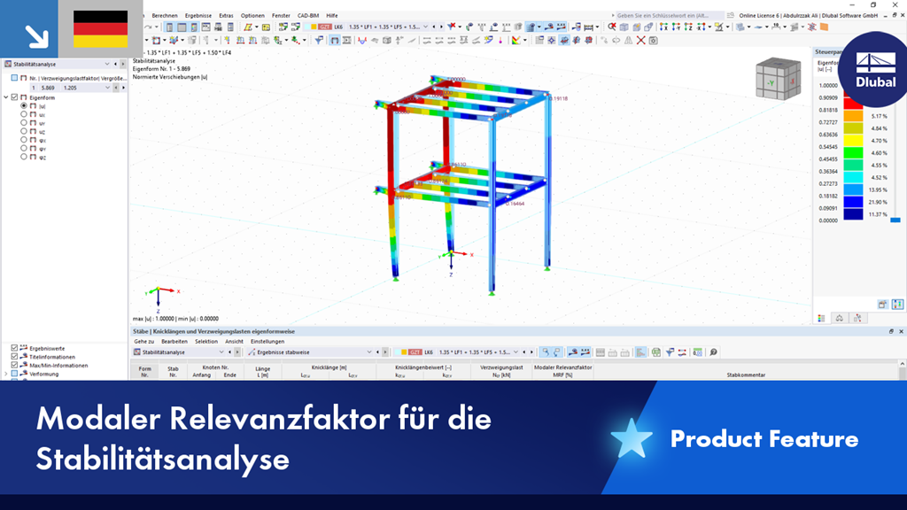Darüber hinaus können mit dem MRF kritische Verzweigungslasten und äquivalente Knicklängen bestimmter Bauteile ermittelt werden (z. B. für die Stabilitätsbemessung).