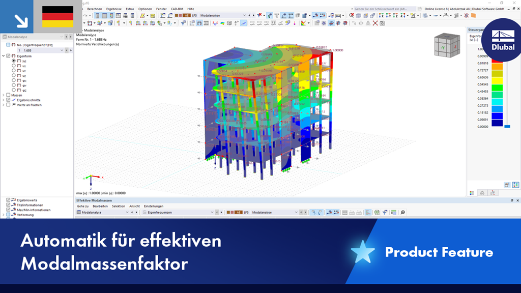 Im Add-On Modalanalyse steht Ihnen die Option zur automatischen Erhöhung der gesuchten Eigenwerte bis zur Erreichung eines definierten effektiven Modalmassenfaktors zur Verfügung. Es werden dabei alle translatorischen Richtungen berücksichtigt, welche für die Modalanalyse als Massen aktiviert wurden.
