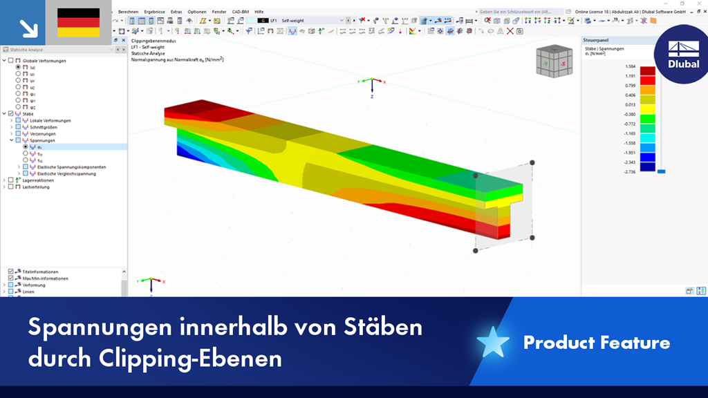 Erhalten Sie ein besseres Verständnis der Spannungsverläufe innerhalb der Stabquerschnitte durch die Verwendung von Clipping-Ebenen.