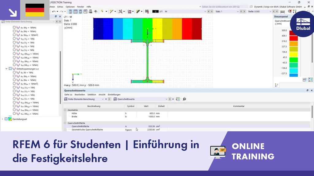 Kostenlose Online-Basisschulung für Studenten zum Querschnittswerte-Programm RSECTION 1 und zum FEM-Statikprogramm RFEM 6 | Einführung in die Festigkeitslehre