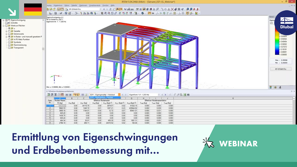 Ermittlung von Eigenschwingungen und Erdbebenbemessung mit RF-DYNAM Pro