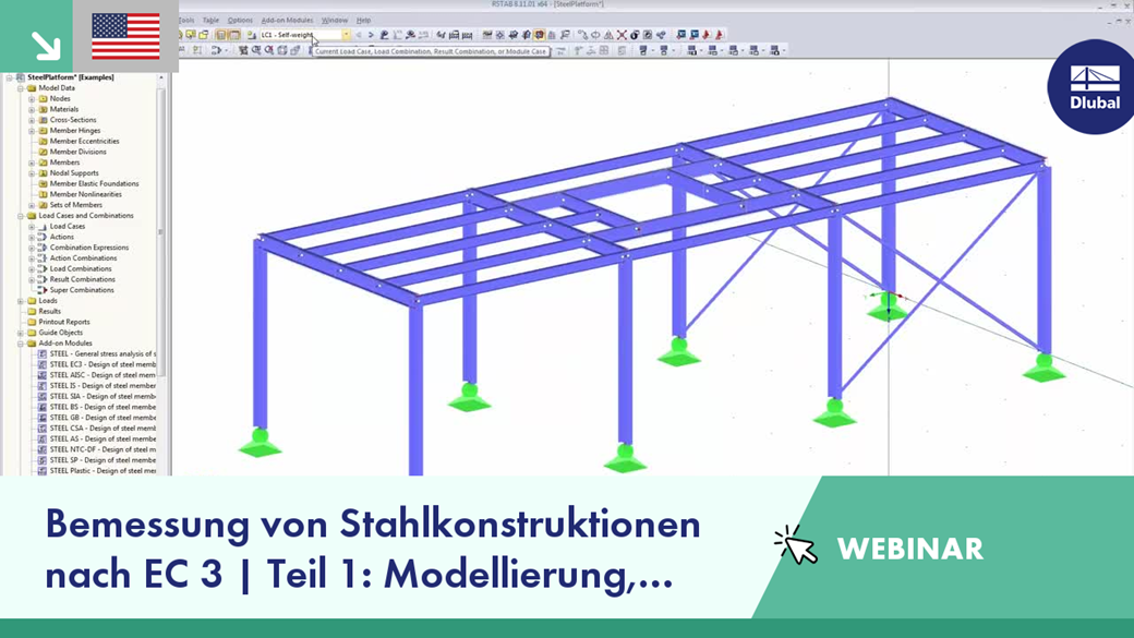 Dlubal-Webinar: Bemessung von Stahlkonstruktionen nach EC 3 | Teil 1: Modellierung, Belastung