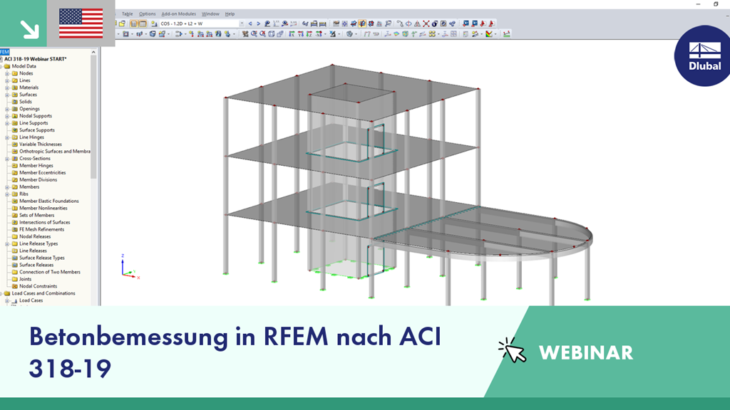 In diesem Webinar wird der allgemeine Ablauf der Betonbemessung nach ACI 318-19 in RFEM und in den Zusatzmodulen von RF-BETON vorgeführt.