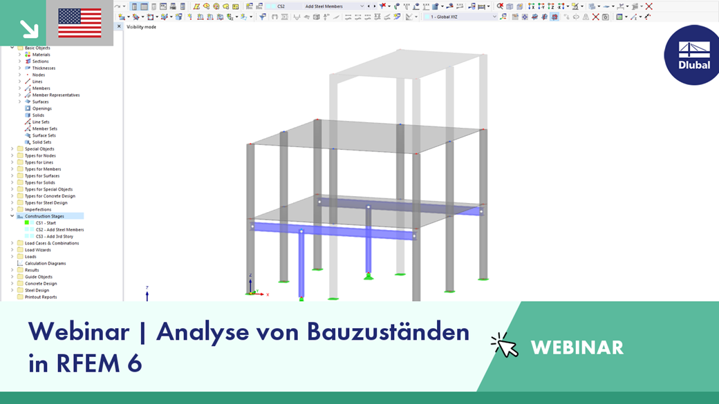 Kostenloses Webinar | Analyse von Bauzuständen in RFEM 6 (USA)