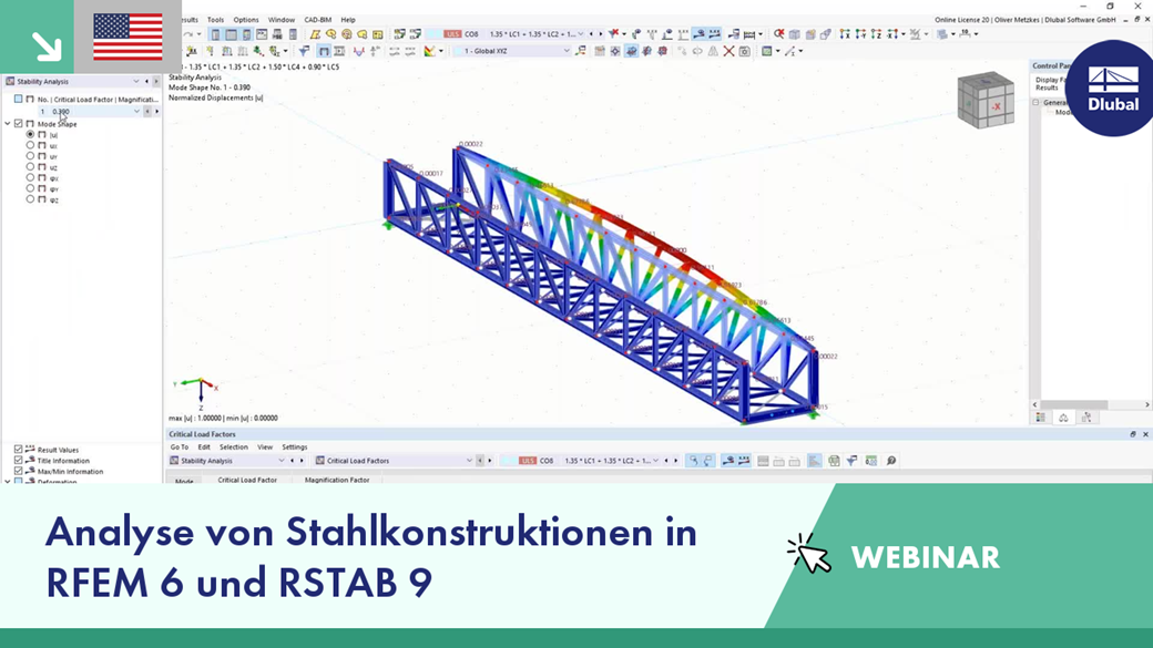 Ermittlung von Knicklängen mit dem Add-On Strukturstabilität und Bemessung der Stahlstäbe nach Eurocode 3 mit dem Add-On Stahlbemessung