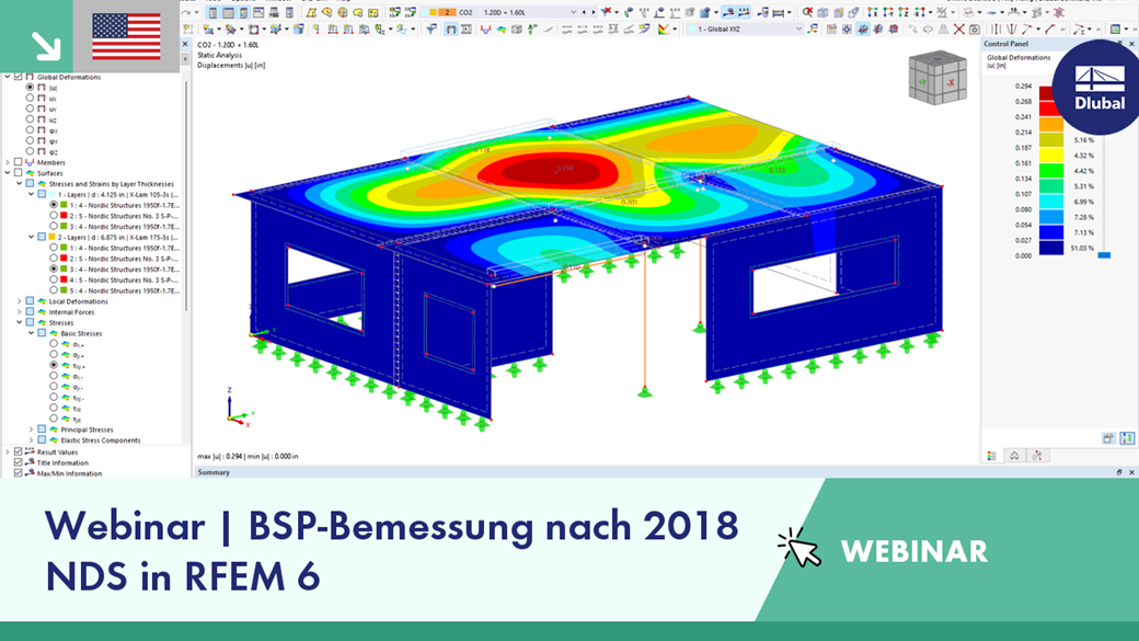 Dieses Webinar bietet eine Einführung in die Bemessung von Brettsperrholz (englisch: cross-laminated timber - CLT) gemäß 2018 NDS in RFEM 6.