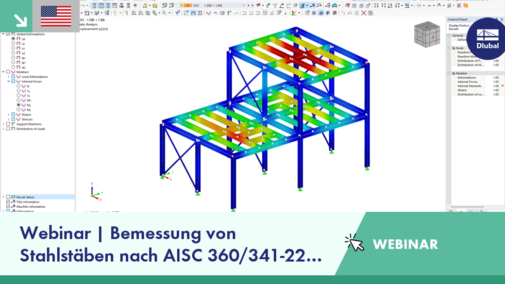Dieses Webinar bietet eine Einführung in die Bemessung von Stäben aus Stahl nach EC 3. nach AISC 360-22 und 341-22 in RFEM 6.