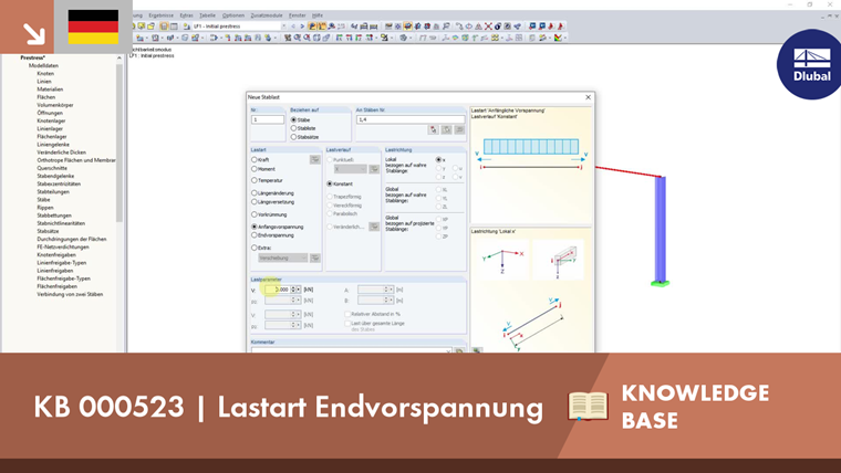 Durch Wahl der Lastart "Endvorspannung" bei der Lastdefinition in RFEM 5 wird nun programmintern die Last solange erhöht bis die Normalkraft der Vorspannkraft entspricht.