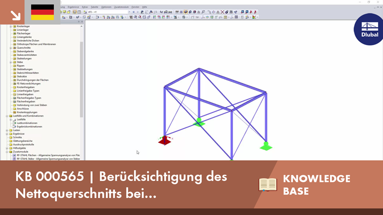 Standardmäßig wird der Nachweis der Zugtragfähigkeit im Zusatzmodul nur unter Berücksichtigung der plastischen Zugbeanspruchbarkeit des Bruttoquerschnitts geführt (Formel 1). Der Nachweis nach Formel 2 kann aktiviert werden, indem für die Stäben in der Eingabemaske ‚Parameter Stäbe‘ die Option ‚Nettoquerschnittsfläche‘ ausgewählt wird. Hier ist die Eingabe einer Nettoquerschnittsfläche Anet für Stabanfang ( x = 0 ) und Stabende ( x = l ) möglich. Um die gleiche Nettoquerschnittsfläche für mehrere Stäbe gleichzeitig einzugeben, empfiehlt sich die Nutzung der Funktion ‚Eingabe setzen für Stäbe Nr.‘.