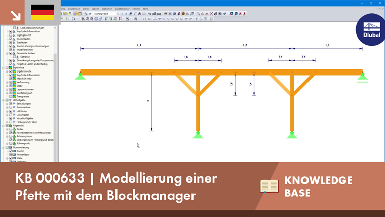 Zuvor sind jedoch die Knoten und Lasten entsprechend zu parametrisieren. Die genaue Vorgehensweise kann dem Video entnommen werden. Für das Speichern des Blocks muss die komplette Struktur zuvor markiert werden. Im Anschluss kann der Block direkt in RFEM bzw. RSTAB eingelesen werden oder über den Blockmanager