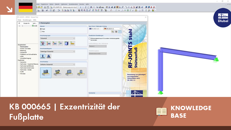 Aus konstruktiven Gründen kann es notwendig werden, dass eine Fußplatte nicht zentrisch auf ein Fundament aufgesetzt wird. Daher ist in RF-/JOINTS Stahl - Stützenfuß eine exzentrische Anordnung der Fußplatte über die Eingabe der Parameter für die jeweilige Richtung in Maske 1.4 möglich.