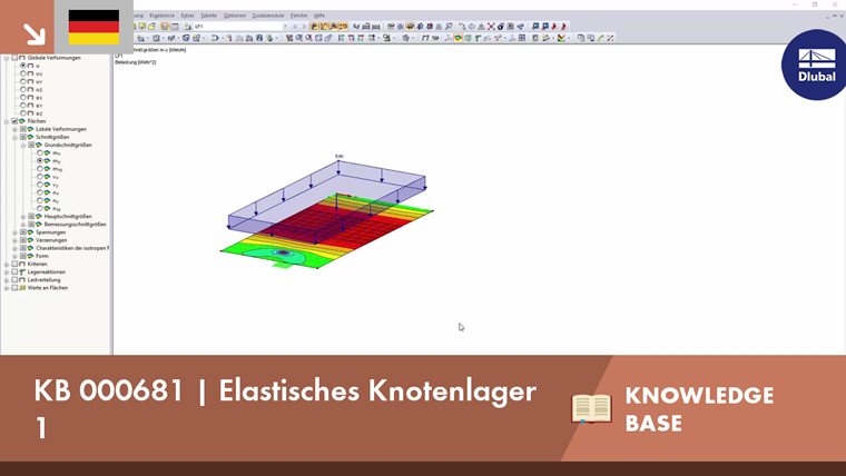 Bei der Flächenbettung wird eine Fläche mit den Stützenabmessungen herausgelöst und intern elastisch gebettet. Die linke Platte ist mit einem Lager als Stütze berechnet, die rechte hingegen mit einem normalen Knotenlager.