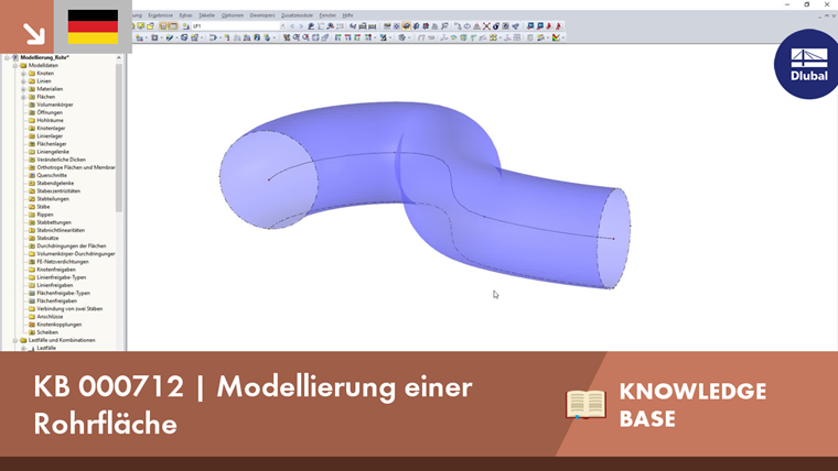 Mit dieser Option wird der Flächentyp Rohr anhand des Materials, der Dicke der Fläche sowie des Radius an der gewünschten Linie definiert und erzeugt.
