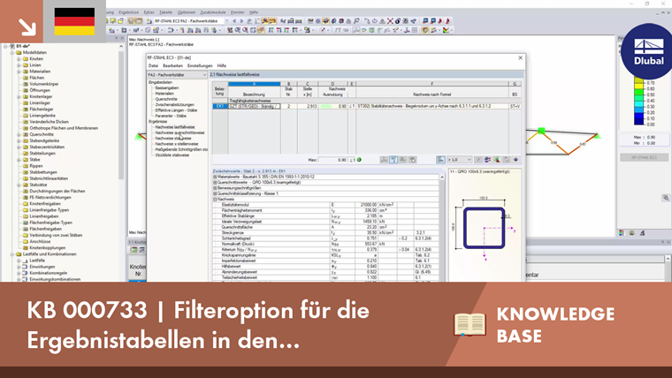 Die Definition des Filters unter einer Ergebnistabelle kann genutzt werden, um die maximalen Nachweise anzuzeigen. In der Ergebnistabelle mit stabweiser Ausgabe wird bei aktivem Filter nur noch der maximale Nachweis je Stab dargestellt. Somit lässt sich die Ausgabe wesentlich reduzieren und kann besser überblickt werden.