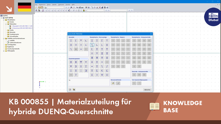 Daraufhin kann im Dialog "Querschnitt bearbeiten" für die Elemente ein beliebiges Material ausgewählt werden. Die Elemente werden dabei mit einer Nummer versehen, mit welcher die Zuordnung erfolgt. Mit Hilfe des Referenzmaterials werden anschließend die ideellen Querschnittskennwerte ermittelt. Diese Möglichkeit dient alleine zur Berücksichtigung der Steifigkeit. Eine Bemessung in den Zusatzmodulen ist nicht möglich.