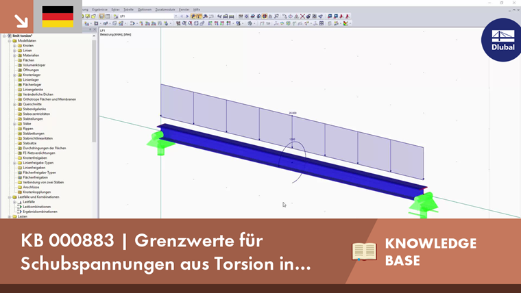 Bei offenen Profilen kann im Allgemeinen davon ausgegangen werden, dass einwirkende Torsionsmomente nicht über primäre Torsion, sondern über sekundäre Torsion (Wölbkrafttorsion) abgetragen werden. In RFEM und RSTAB werden die Schnittgrößen aber zunächst nur mit sechs Freiheitsgraden ohne Berücksichtigung der Verwölbung ermittelt. Für kleine einwirkende Torsionsmomente scheint daher die Vernachlässigung der Torsionsspannungen im Nachweis naheliegend. Für große Torsionsmomente sollte allerdings eine Berechnung mit sieben Freiheitsgraden erfolgen, um auch den Einfluss des Wölbbimomentes und der sekundären Torsionsschubspannungen berücksichtigen zu können. Dies ist zum Beispiel mit den Zusatzmodulen RF-/STAHL Wölbkrafttorsion oder RF-/FE-BGDK möglich.