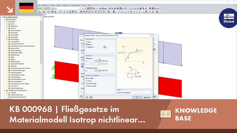 Beiden Fließregeln ist gemein, dass die Spannungs-Dehnungs-Beziehungen - bedingt durch die Form des Kreiszylinders - im negativen und positiven Bereich symmetrisch sein müssen. Über eine Zeitdiskretisierung werden die Fließkriterien mit dem impliziten Eulerverfahren numerisch integriert. In RFEM wird die Diskretisierung über einzelen Lastschritte umgesetzt.